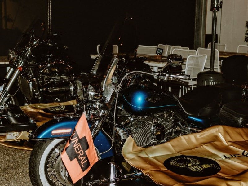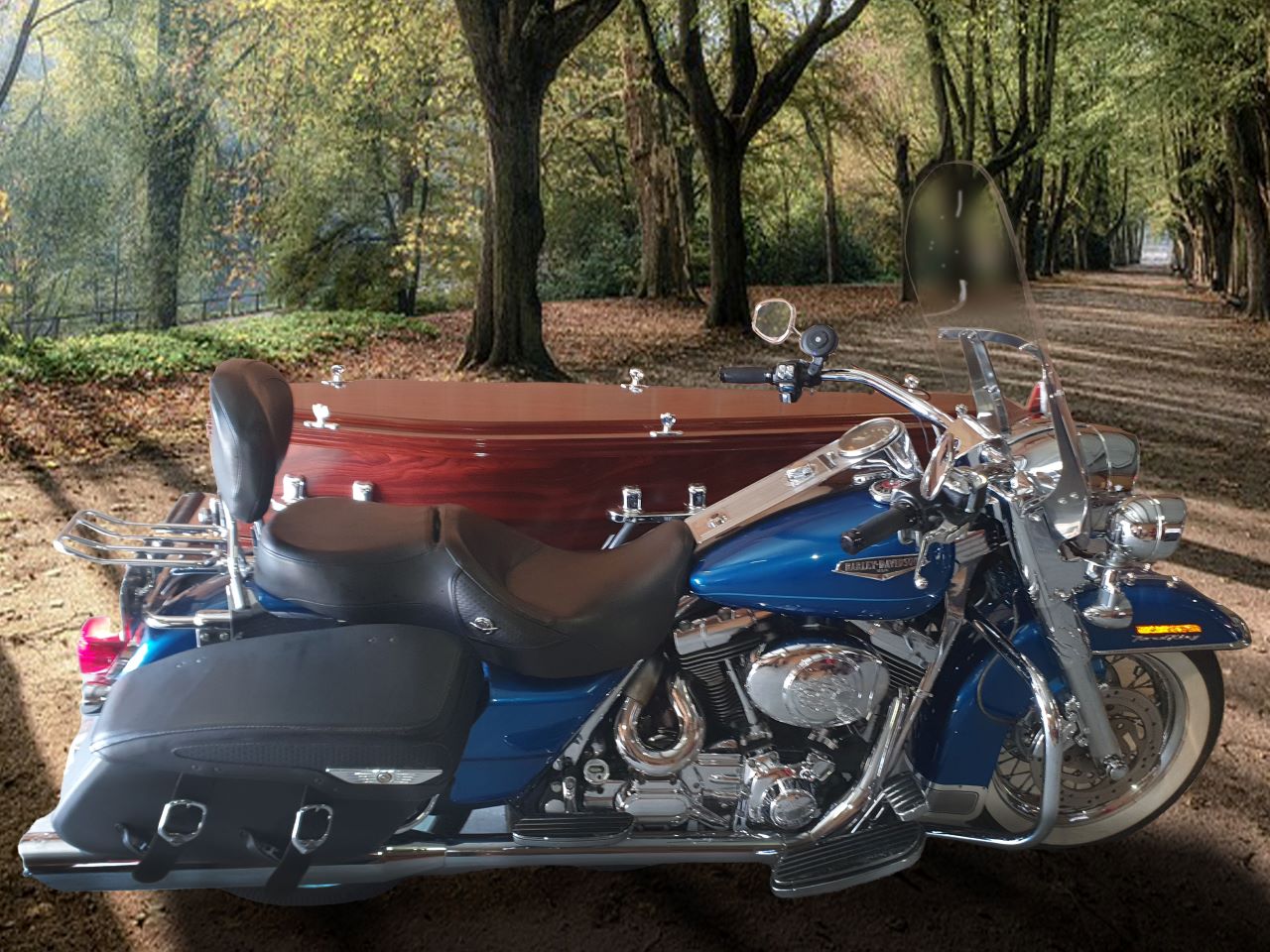 The Harley Davidson Road King resplendent with Heavenly Ride flag